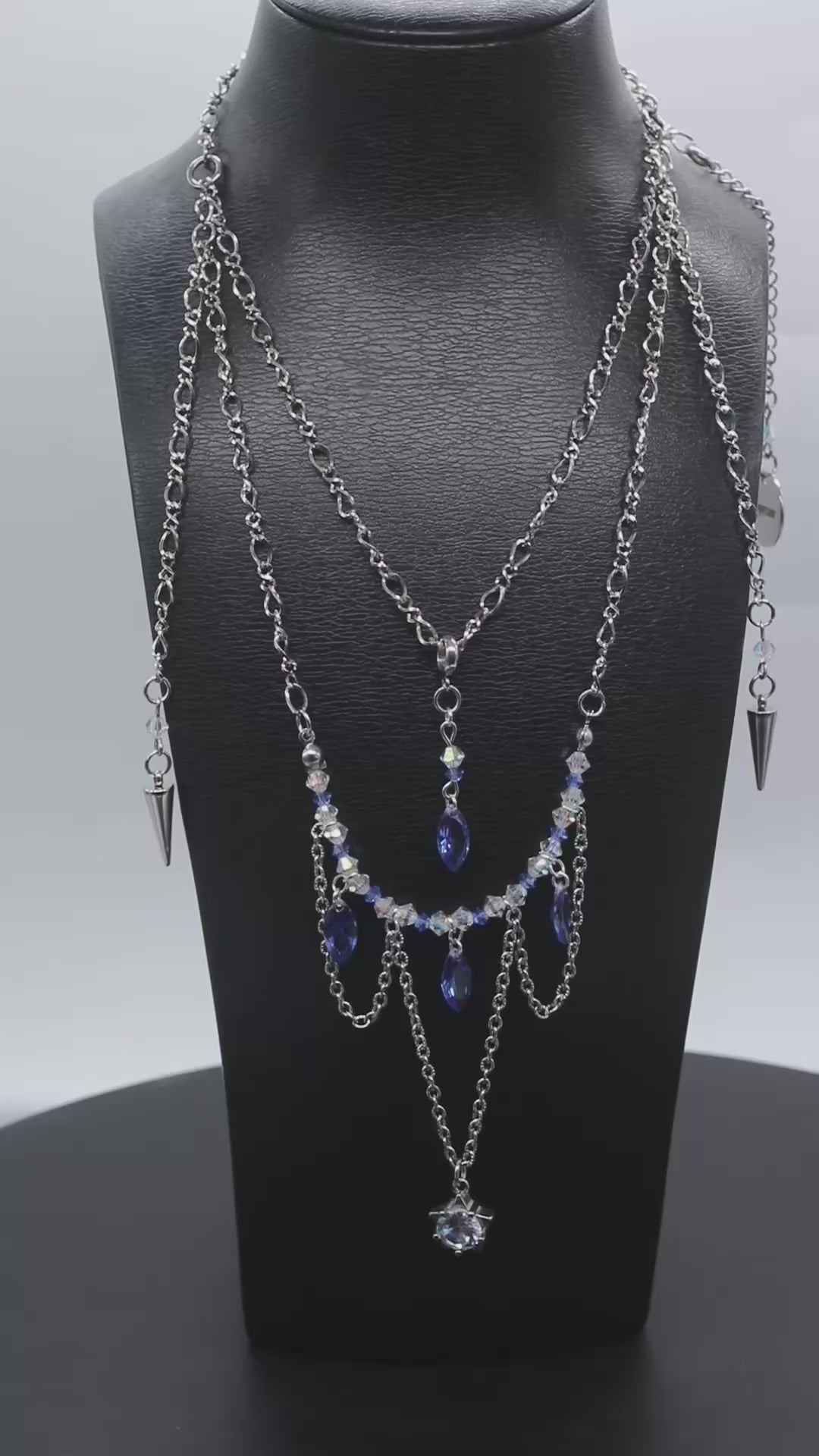 Le collier Aura, façonné à la main en acier inoxydable, est sublimé par l’éclat des diamants en verre et la finesse des perles en cristal Preciosa. Il est illuminé d’un pendentif étoilé en verre.