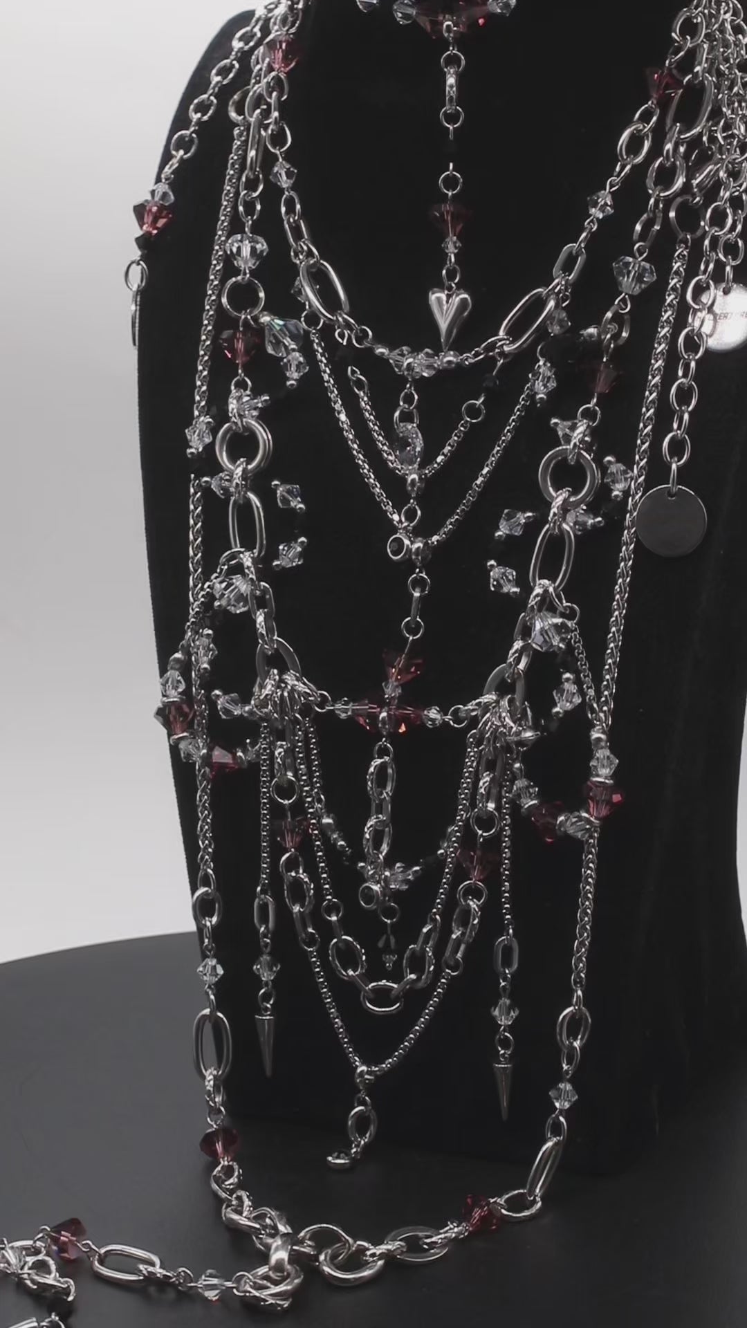 Zeï est une création en acier inoxydable, sertie de cristaux Preciosa et de perles en verre violacées. Elle célèbre ceux et celles qui osent embrasser leur complexité unique : nuancées, entières.